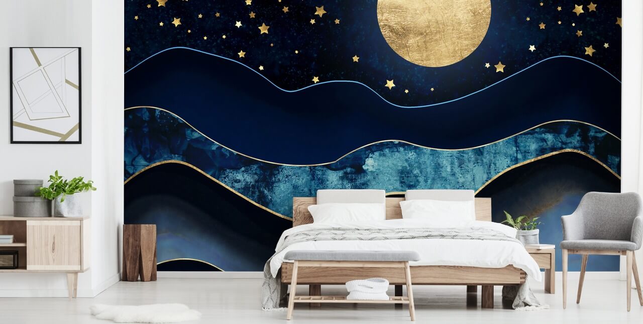 If you are looking for the perfect navy and gold wallpaper, feast your eyes on this beautiful Golden Moon wall mural…