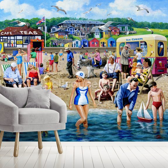 Bring the summer holidays indoors with this custom-made At The Beach wall mural!