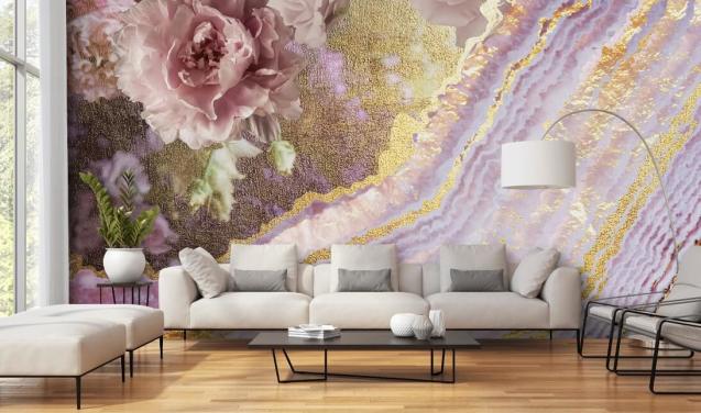 gold and purple marble wallpaper mural called Gold Dust Purple for bedrooms and living rooms