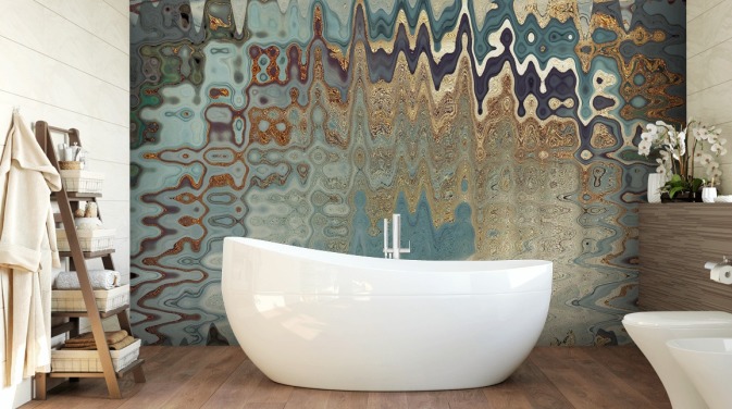 pink and turquoise custom marble wallpaper mural called Ombre Strata by Lara Skinner for bedrooms