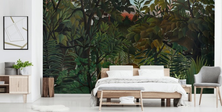 colourful fine art wallpaper mural called Exotic Landscape by Henri Rousseau