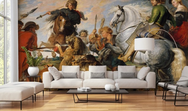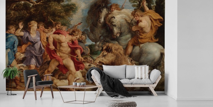 fine art wall mural called The Calydonian Boar Hunt by Peter Paul Rubens for living rooms, dining rooms and home offices