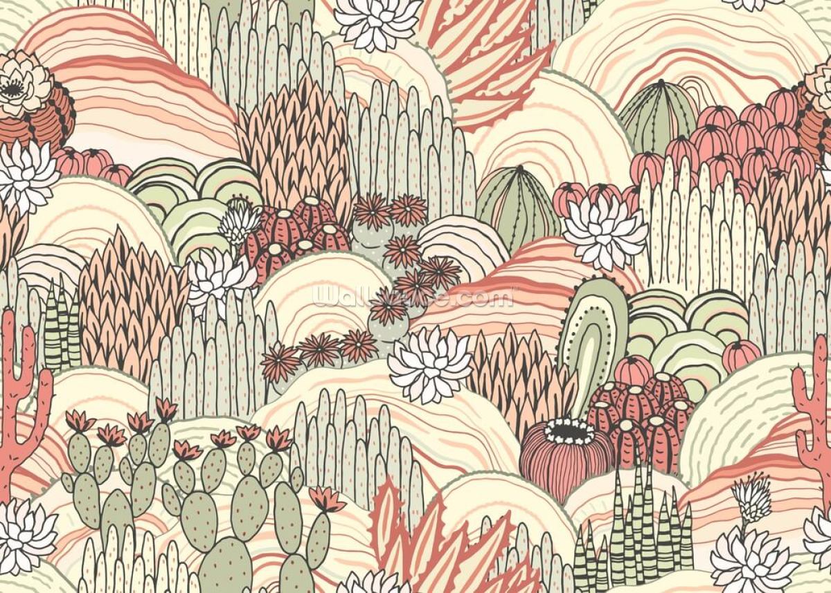 Bring retro style to your walls with this made to measure 60s Cacti Landscape wallpaper.