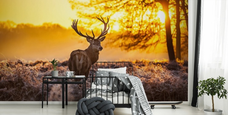 custom stag wallpaper mural called Stunning Red Deer In Morning Sun for bedrooms and living rooms