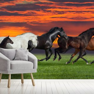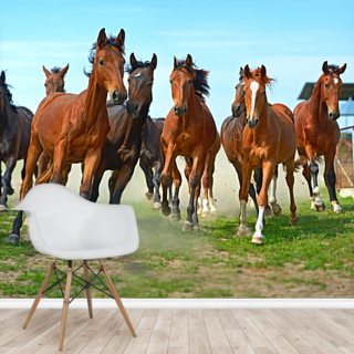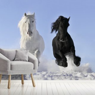 black and white customisable horse wallpaper called Horses Black & White for businesses, living rooms and kitchens