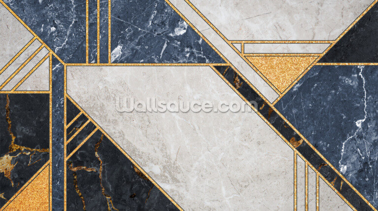 Rose Gold and Navy Tiles Art Deco Wallpaper
