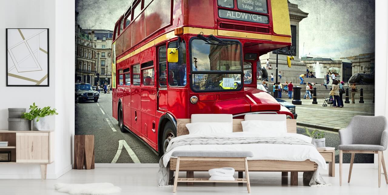 If you would like to transform your living room feature wall, then choose this custom-made Double Decker wallpaper available at Wallsauce. We think that this red bus wallpaper would look perfect on the wall next to your red couch. Paint the surrounding walls pastel grey and invite beautiful red room accessories into the room as well.