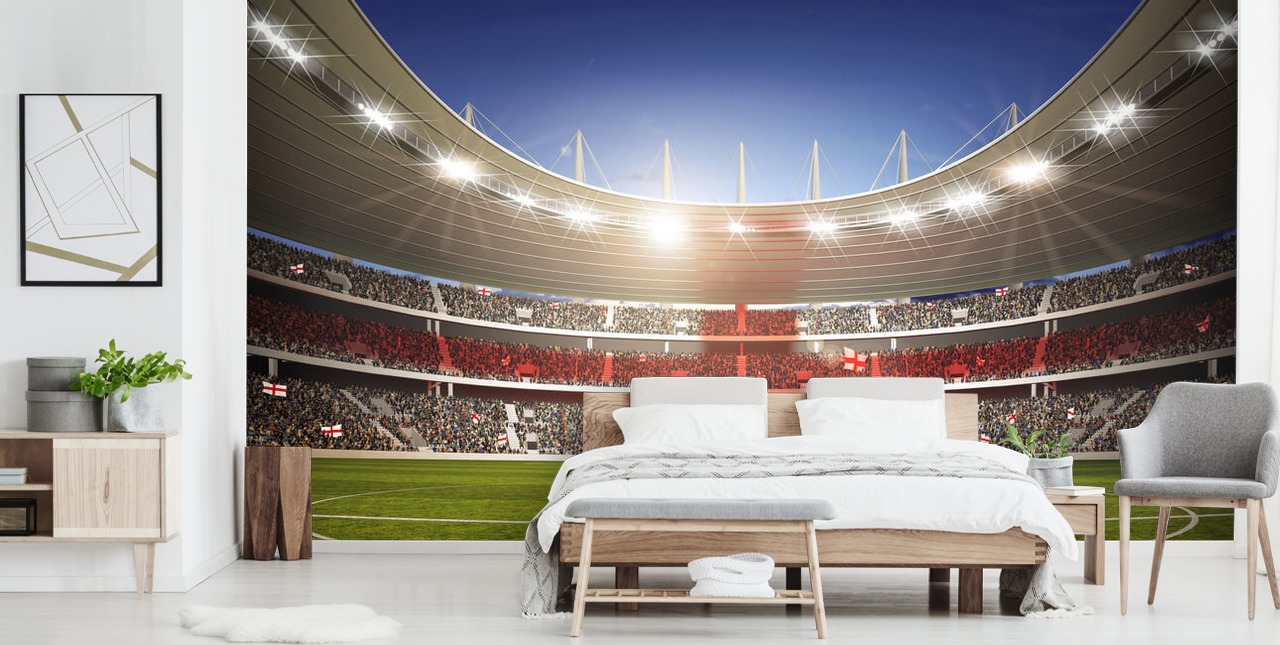 Bring the spirit of the game home with our custom-made Football Stadium mural with England Flag.