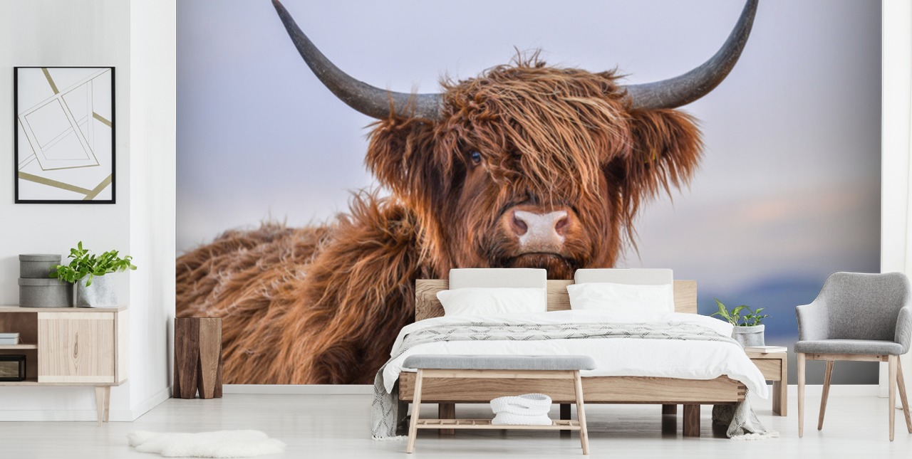 Remember to add a little extra to your wall’s measurements when you’re ready to enter your dimensions and purchase Highland Cow Close-Up. This is so the mural can be trimmed to perfection during installation.