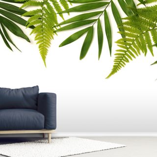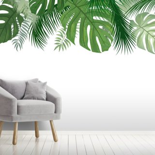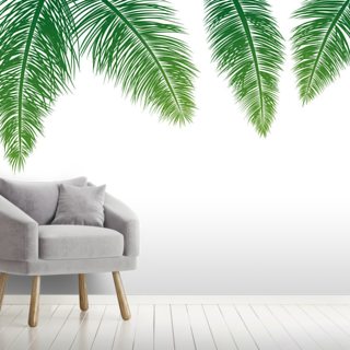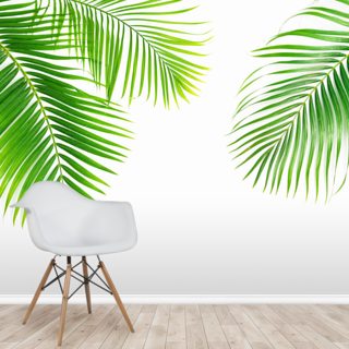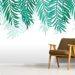 green customisable leaves wallpaper mural called Leaves of Palm Tree for kitchens or bedrooms