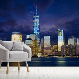 dark customisable New York wallpaper mural called New York Manhattan Skyline at Night for offices and living rooms