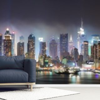 dark customisable New York wallpaper mural called New York Manhattan Skyline at Night for offices and living rooms