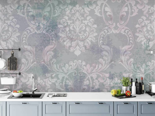 light pink pattern wallpaper mural called Baroque Damask for bedrooms, living rooms and kitchens