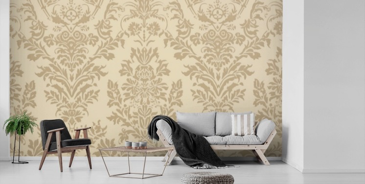 beige customisable pattern wallpaper called Beige Damask for bedrooms, living rooms and hallways