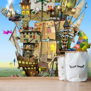 kids pirate ship in sea wallpaper