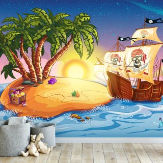 Pirate Island and Ship Wall Mural