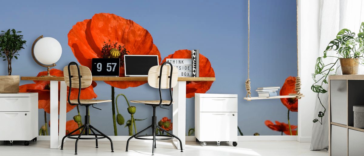 Poppy wall mural perfect for any wall. Supplied in panels, easy to order, easy to install and easy on the eye.