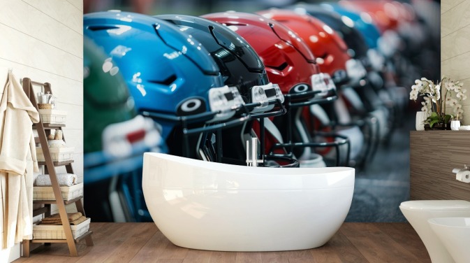 red and blue NFL wallpaper mural called Breaking a Tackle for bedrooms and home offices