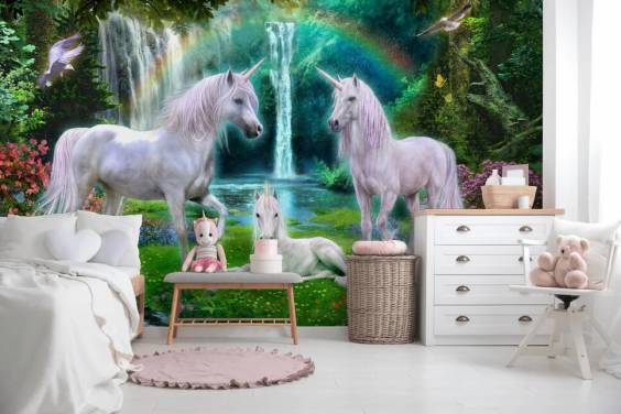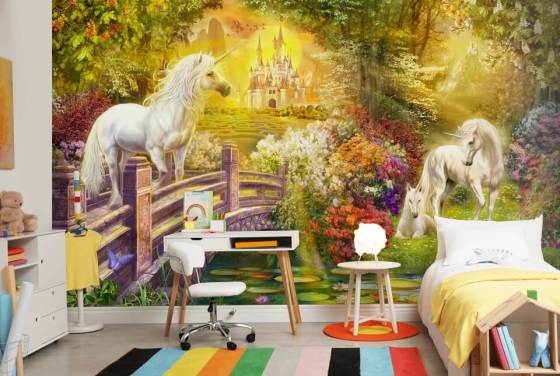 Magical and mythical unicorn wallpaper murals can bring enchantment to any room.