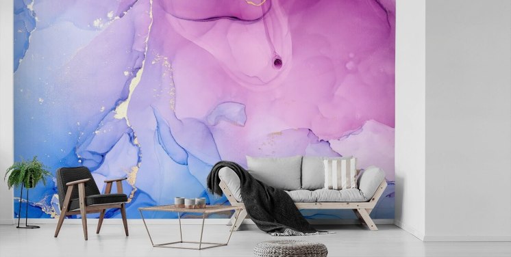 Blue and Purple with Gold Watercolour Mural