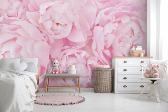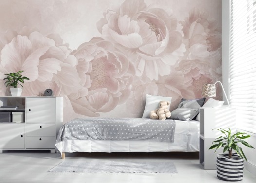 large floral wall mural with blush pink peonies by Marina Stupakova for bedrooms