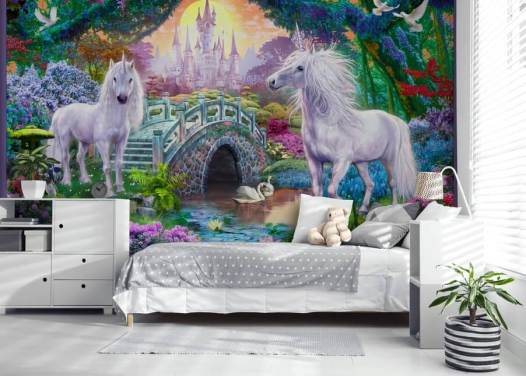 Unicorns, rainbows, horses, enchanting forests, abstract mountains, pop art, colourful patterns - we have a huge collection of wall murals that are perfect for a girl’s bedroom. Whether they love things pretty in pink or dark green and mysterious, they are sure to find something they love in our range of wallpaper for girls' bedrooms.