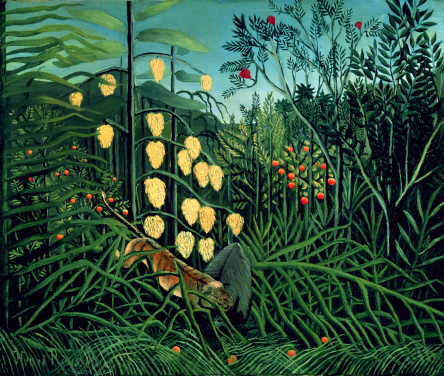 pink and green jungle wallpaper called Jungle Rendezvous by Andrea Haase