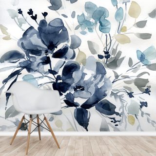 navy blue customisable floral wallpaper mural called Midnight Splash by Carol Robinson for bedroom