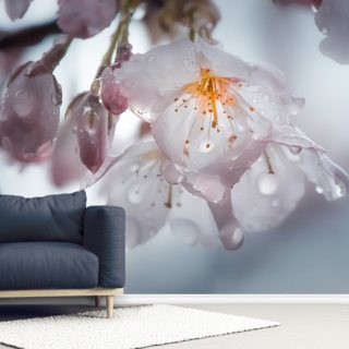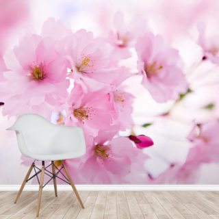 pink and green customisable floral wallpaper mural called Spring in Full Bloom by Carol Robinson for living rooms