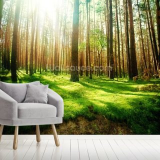 bright forest wallpaper mural called Bright Forest Sunlight for bedrooms, offices and dining rooms