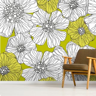 green and yellow floral wallpaper mural called Good Morning Flowers by 1x for bedrooms, living rooms and dining rooms