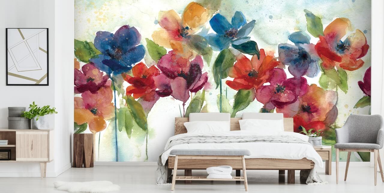 Diese farbenfrohe Tapete würde in den meisten Wohnräumen fantastisch aussehen. Aufgrund seiner Vielseitigkeit in Bezug auf eine Vielzahl von Farben und Mustern würde dieses Blumen-Wandbild in Ihrem Wohn- oder Schlafzimmer besonders gut aussehen. Streichen Sie die umliegenden Wände mit weißer Farbe und sammeln Sie eine kleine Auswahl an farbenfrohen Dekoren, die eine oder zwei der im Wandbild verwendeten Farben widerspiegeln.