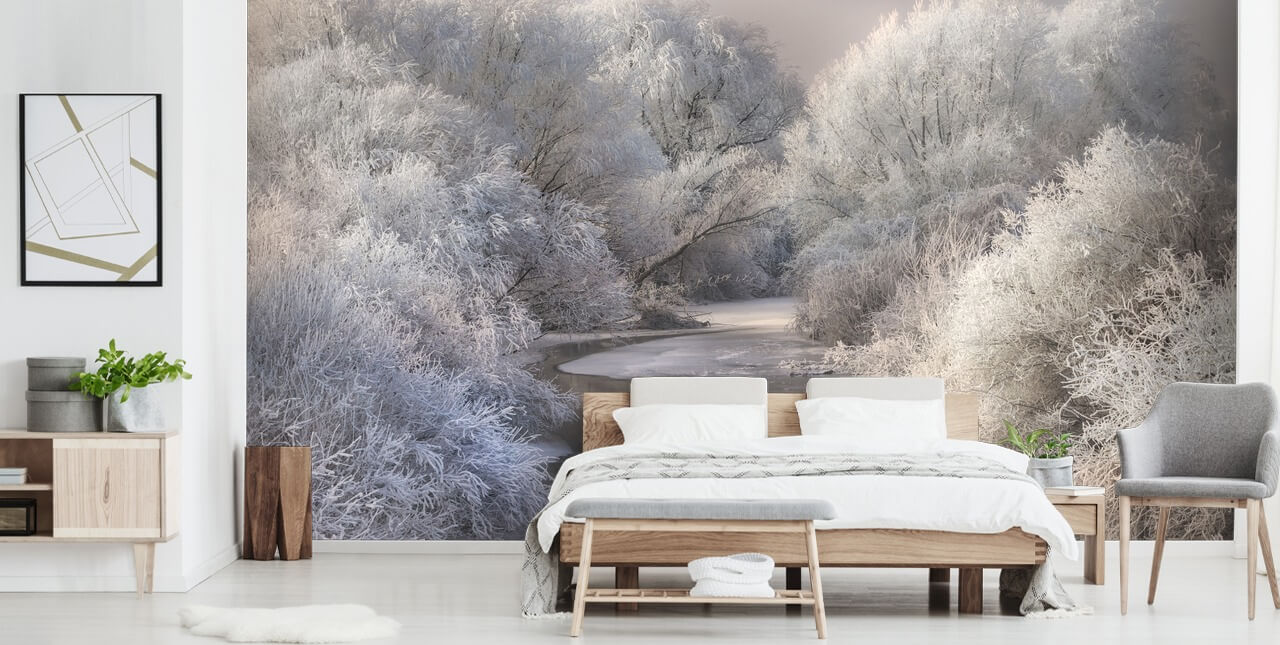 Wenn Sie diese Winterbaumtapete besitzen möchten, rufen Sie uns einfach an und teilen Sie uns die Abmessungen Ihrer Wand, die Wahl der Tapete und den Teil des Bildes mit, den Sie zuschneiden möchten. Alle unsere Wandbilder werden in Paneelen geliefert und mit einer Anleitung geliefert, damit die Installation so einfach wie möglich ist.