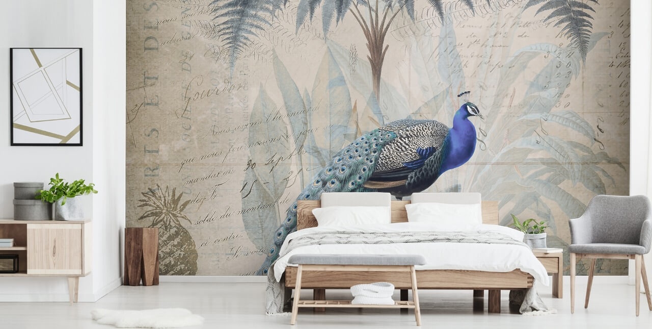 Bringen Sie Vintage-Vibes in Ihr Zuhause mit dieser Peacock Jungle-Tapete von Andrea Haase.
