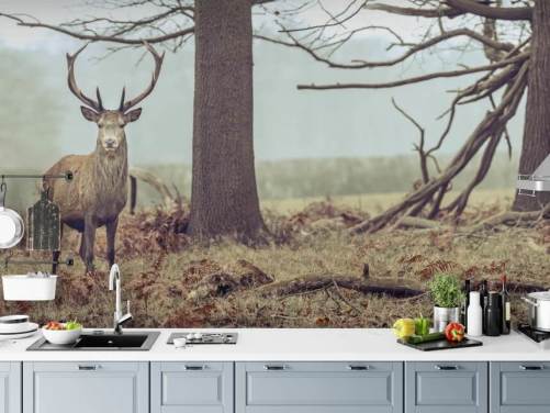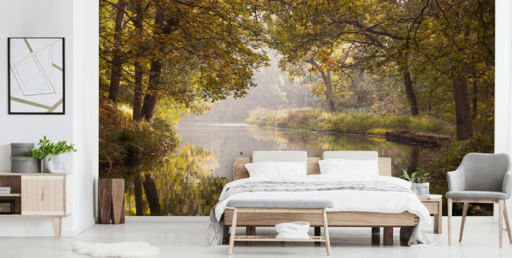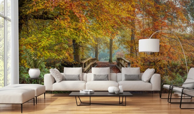 Tapeten-Wandbild „Herbstwald mit Brücke“