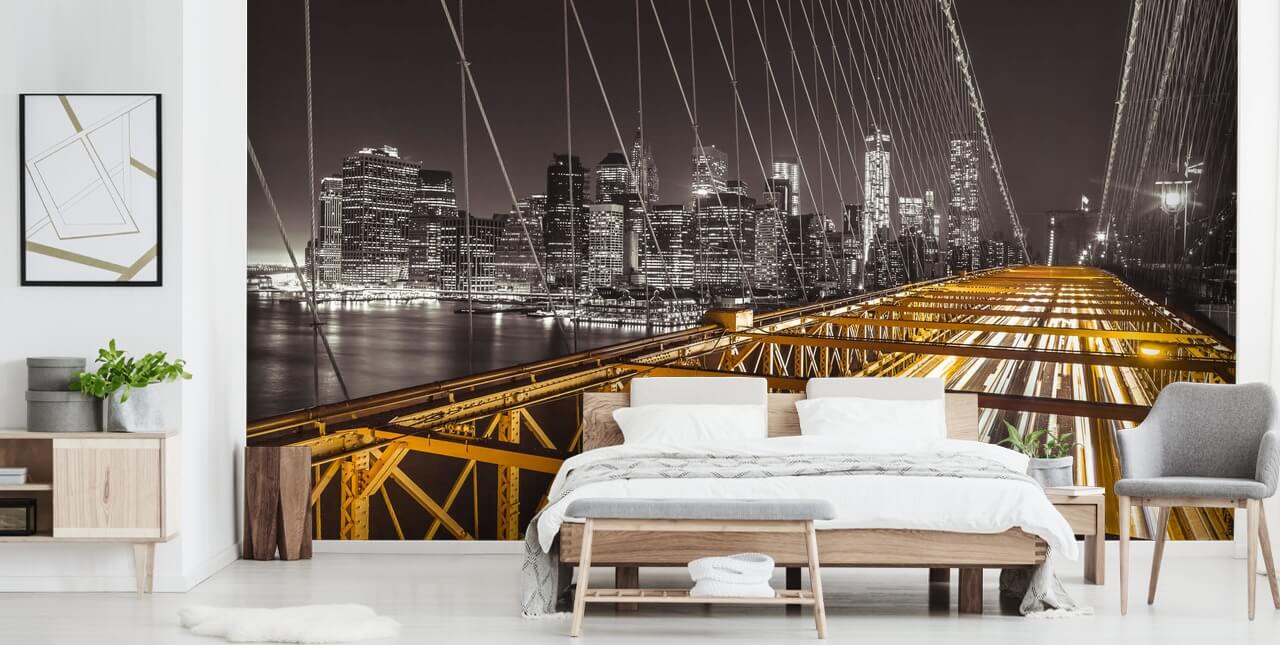 Spüren Sie die Aufregung mit diesem maßgeschneiderten Wandbild der Brooklyn Bridge Bright Street.
