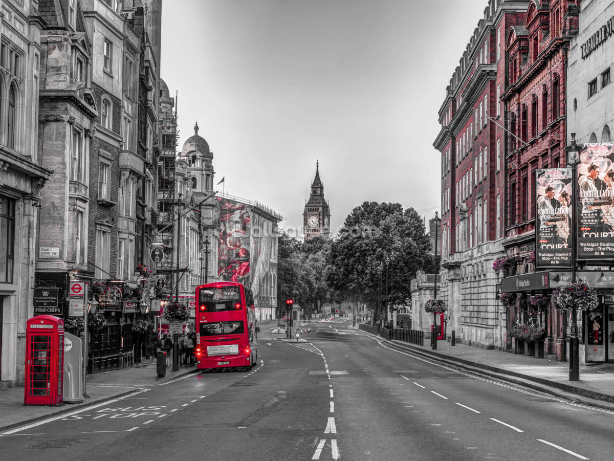 Atemberaubende Streets of London Colour Splash Wandbild von Wallsauce. Diese hochwertige Tapete wird nach Ihren Maßen maßgefertigt.