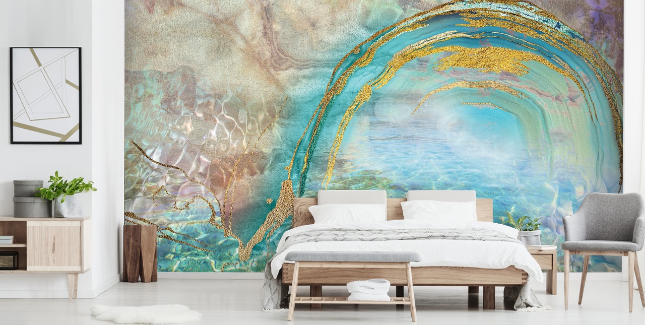 Diese einzigartige Wandtapete, die es exklusiv in Wallsauce gibt, verbindet makellos blaugrüne und kobaltblaue Töne, die an eine ruhige Bucht erinnern. Die abstrakte Interpretation von Kristallgeoden verleiht jedem Raum einen ätherischen Charme. Mit seinen reichen Texturen und harmonischen Farben verspricht es, ein faszinierendes Herzstück für Ihr Zimmer zu werden.