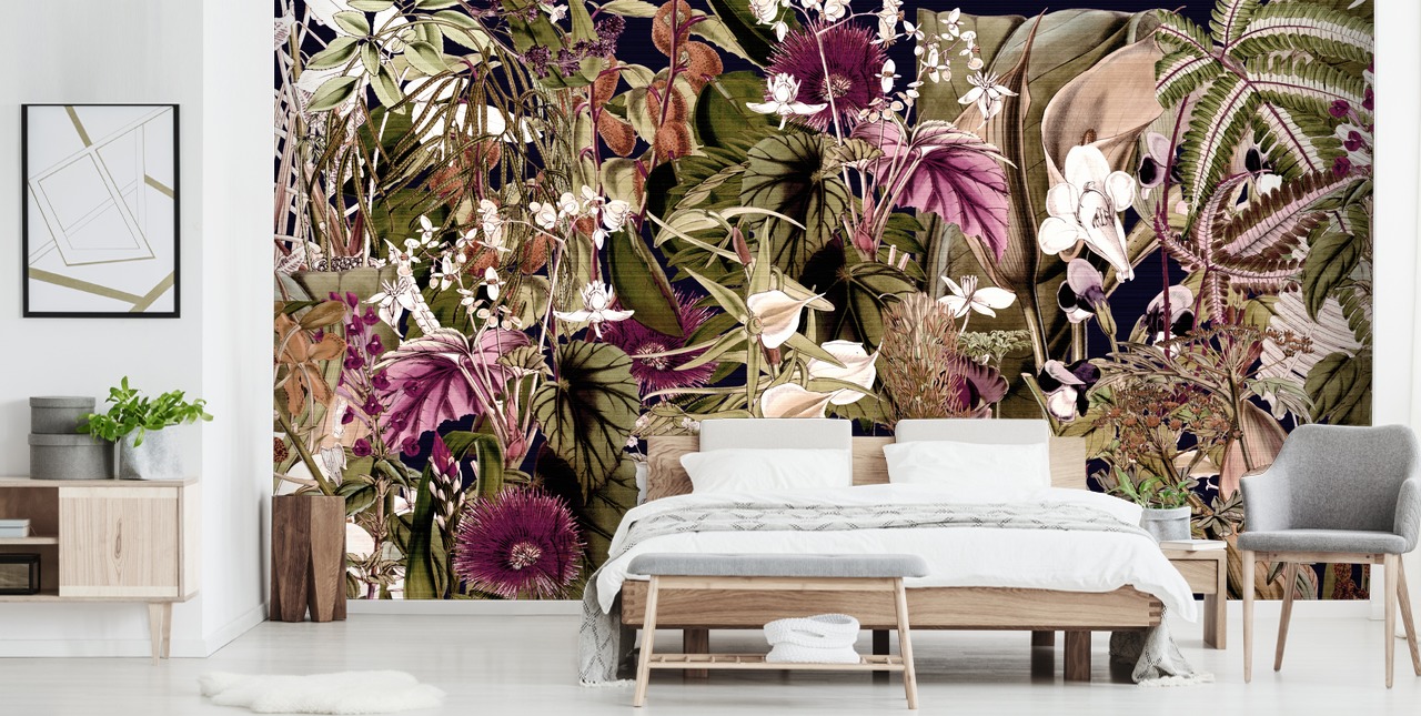 Bringen Sie tropischen Glanz an Ihre Wände mit dieser maßgeschneiderten Fototapete Botanical Foliage von Wallsauce.com. Eine großartige Option, um Ihrem Zuhause einen Hauch von Exotik zu verleihen.