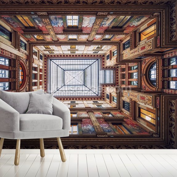 Stellen Sie dieses erstaunliche Wandbild der Galleria Sciarra, Rom, für die atemberaubendste Wand an der Decke auf! Platzieren Sie diese Rom-Tapete einfach an der Decke und erzeugen Sie eine Illusion, die Ihrer Familie und Freunden den Kinnladen fallen lässt!