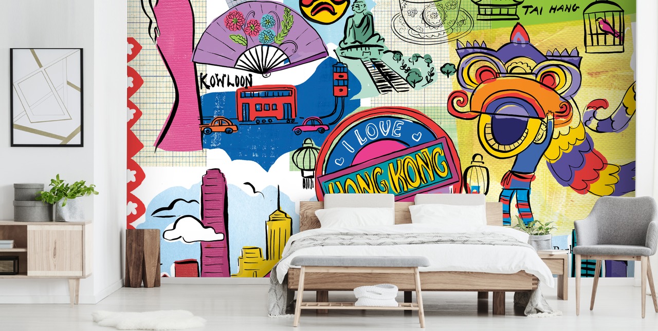 Gönnen Sie sich dieses wunderschöne Hong Kong Life Wandbild, das von Farida Zaman entworfen wurde. Es ist die perfekte chinesische Tapete für eine Vielzahl von Räumen, sei es eine Küche, ein Kinderzimmer oder ein funky Home Office.