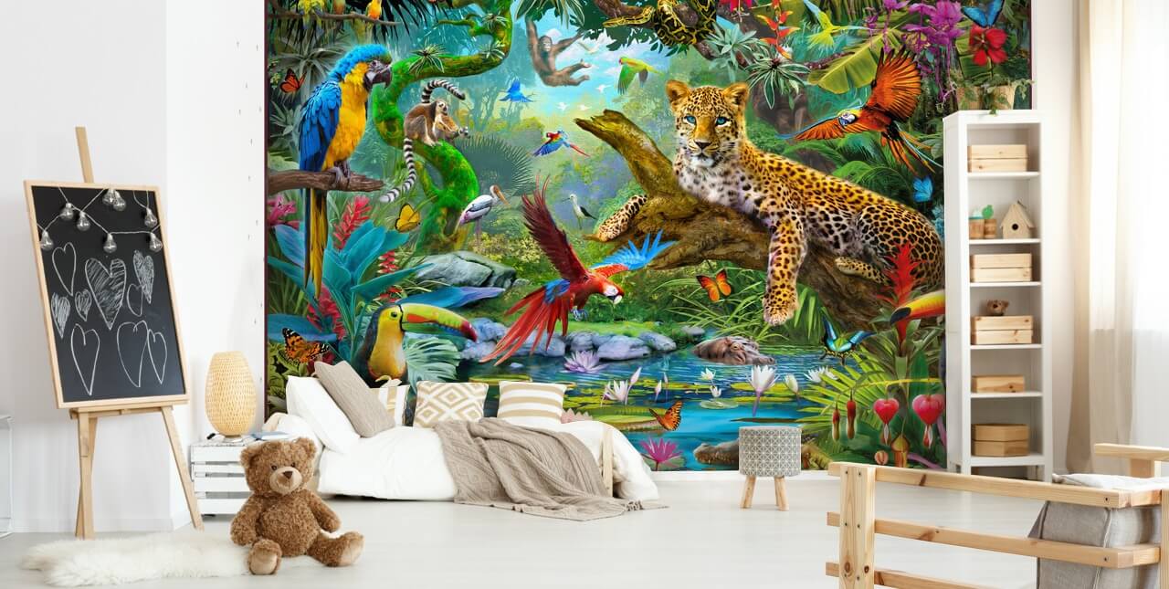 Schmücken Sie Ihre Wand mit Farbe und Leben mit dieser maßgeschneiderten Leopard In Jungle-Tapete. Wir denken, dass diese Safari-Tier-Tapete perfekt für ein Kind wäre, das alle Wildtiere liebt! Stellen Sie sich ihr Gesicht vor, wenn sie dieses atemberaubende Dschungel-Wandbild an der Wand ihres Schlafzimmers sehen!