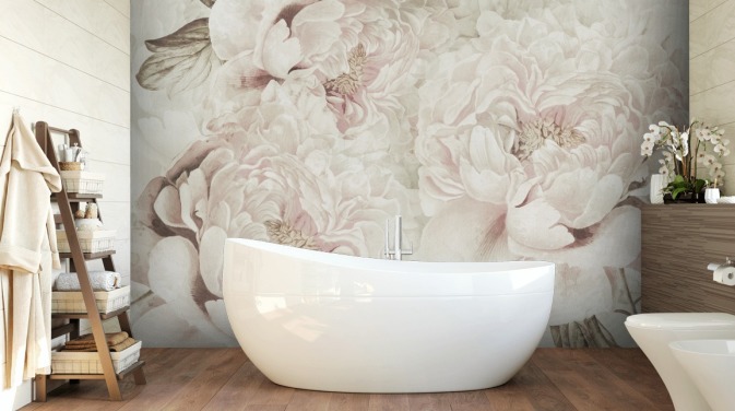 Tapeten-Wandbild mit großen Pfingstrosen in Beige
