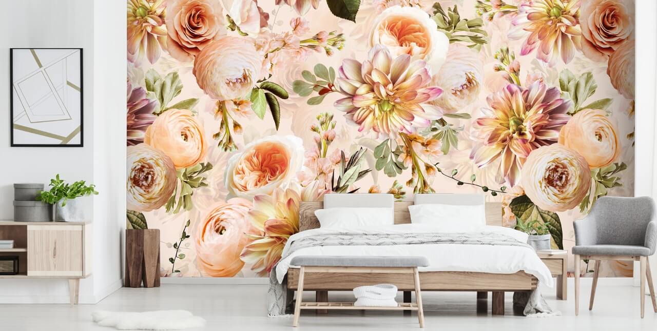 Holen Sie sich diese atemberaubende Peachy Bouquet-Tapete von Wallsauce.com, um das Aussehen Ihrer Wände komplett zu verändern!