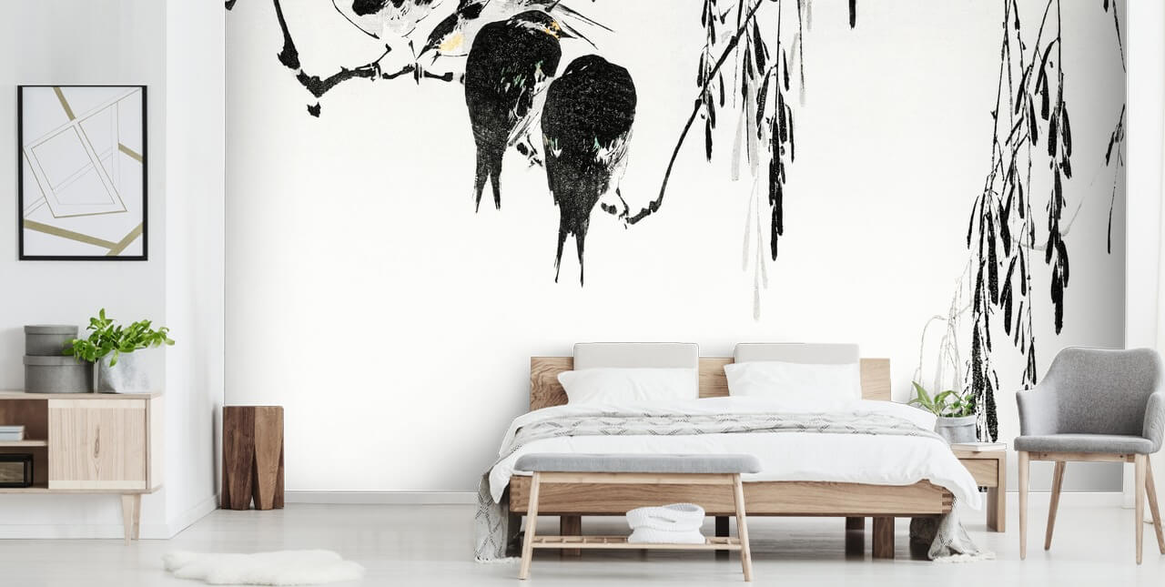 Inspirieren Sie Ihr Wohnzimmer mit unserer Fototapete „thront Elstern“.