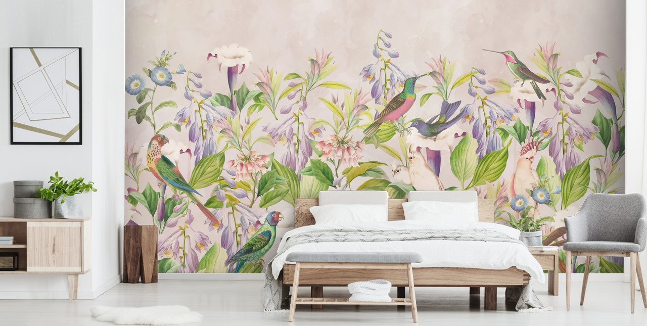 Wenn Sie eine wunderschöne Wand in Ihrem Schlafzimmer schaffen möchten, wählen Sie dieses atemberaubende lila getönte Stechapelblumen-Wandbild von Marina Stupakova. Diese atemberaubende Vogeltapete ist perfekt, um sie an der Wand hinter Ihrem Bett zu platzieren, sodass es aussieht, als würden die Blumen über Ihrem Kopfteil wachsen. Wählen Sie ein smaragdgrünes Kopfteil, cremefarben gestrichene Wände und eine Mischung aus Raum-Accessoires, die die Farben dieser Blumentapete widerspiegeln.