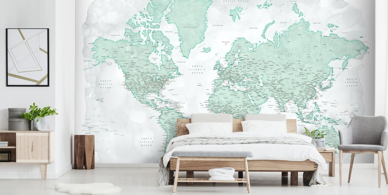 Installieren Sie diese maßgeschneiderte World Map in Mint-Tapete, um Ihr Zuhause komplett zu verändern!