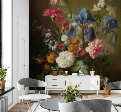 Verleihen Sie Ihrem Raum einen Hauch von Eleganz und natürlicher Schönheit mit einem maßgeschneiderten Wandbild mit den atemberaubenden Blumenstillleben von Jan van Huysum. Van Huysums Werk ist bekannt für seine komplizierten Darstellungen von Blumen und Früchten und verleiht jedem Raum einen raffinierten, zeitlosen Charme.