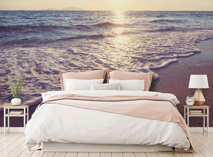 Es ist nicht schwer zu verstehen, warum sich ruhige Strandtapeten so gut für das Schlafzimmer eignen. Sie sind so beruhigend und friedlich, dass Sie Ihre Augen schließen möchten, sobald Sie das Wandbild sehen (auf eine gute Art und Weise)! Bringen Sie diese schöne Strandtapete hinter Ihrem Kopfteil an und wählen Sie eine Reihe von weißen und pastellrosa Dekorationsstücken, die die entspannenden Farbtöne widerspiegeln.