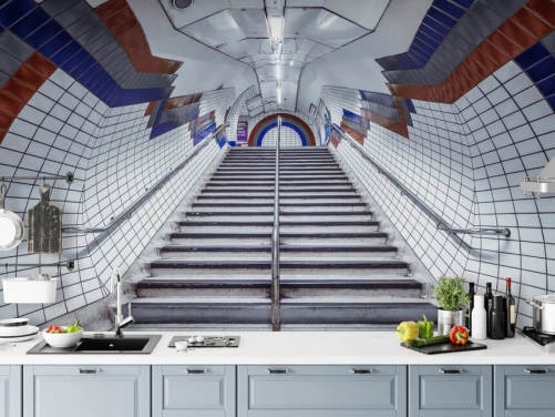 Türkis geschwungene Treppe unterirdisch Wandbild